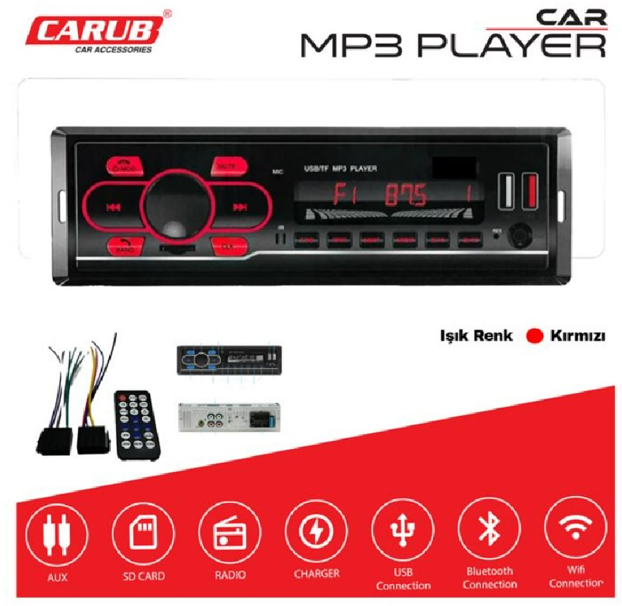 OTO TEYP RADIO MP3 SD CARD AUX USB BLUETOOTH KIRMIZI EKRAN